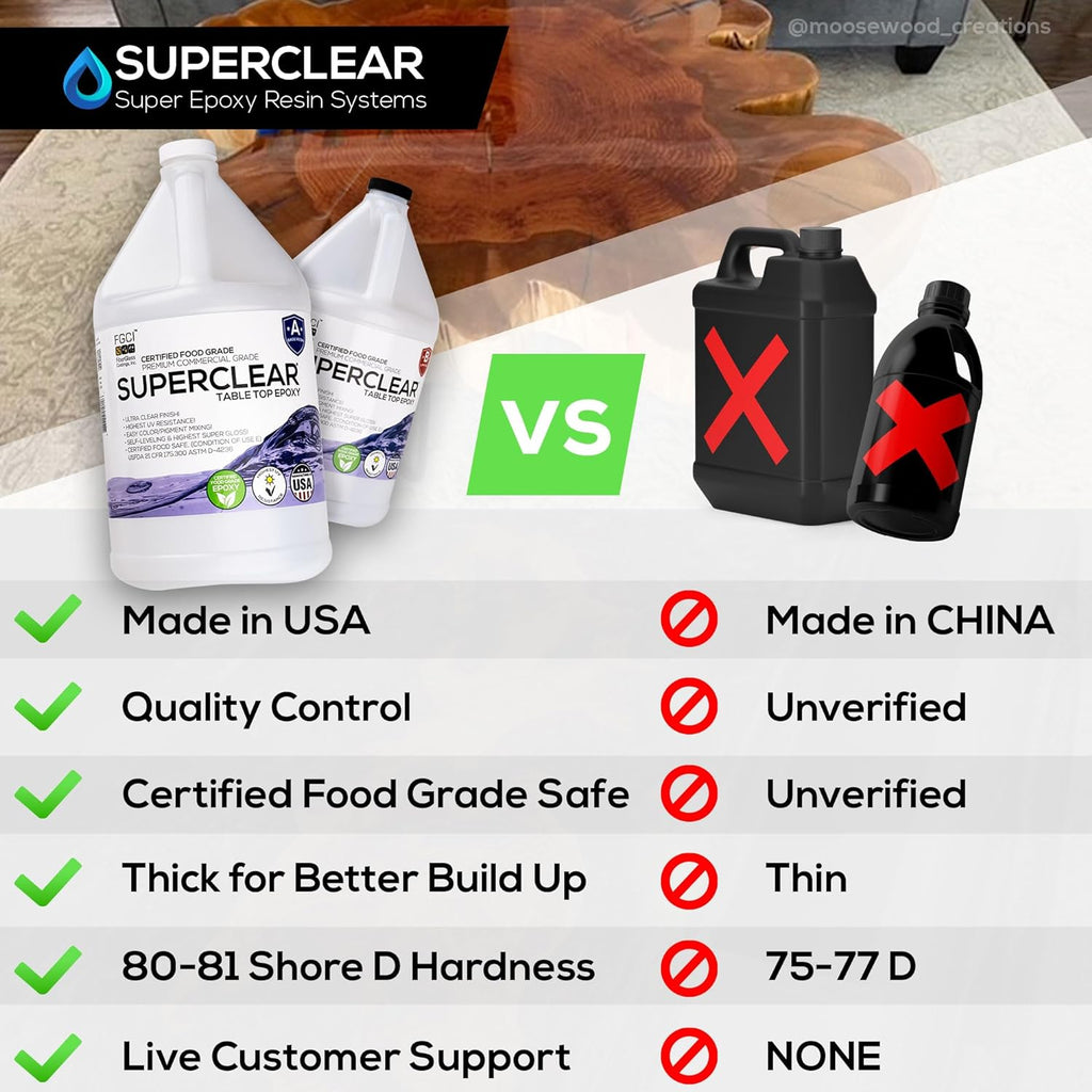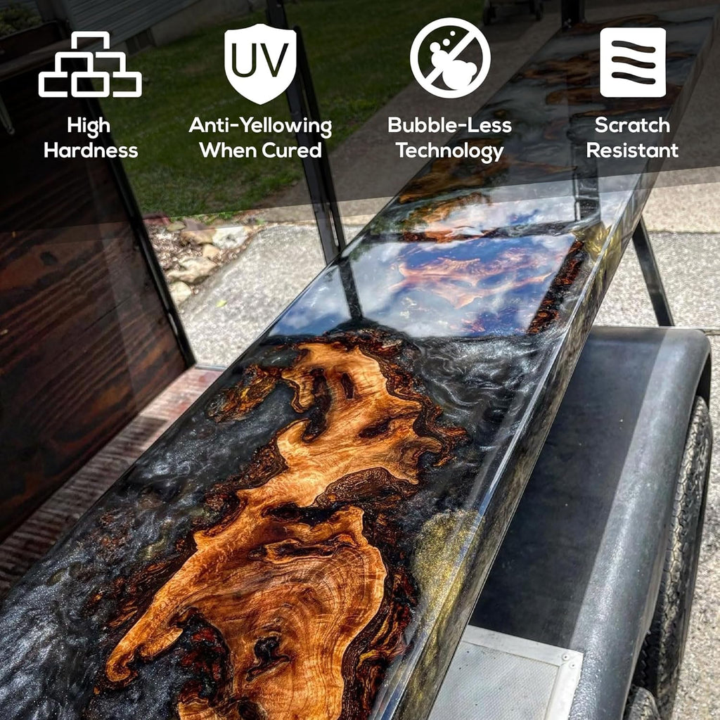 Our Table Top Epoxy Resin offers a crystal-clear, food-safe finish certified for direct food contact. Its high-gloss surface resists yellowing with superior UV protection, keeping your projects vibrant over time. Easy to use and compatible with various pigments, it delivers a smooth, bubble-free coat that withstands impact, scratches, and moisture. Perfect for bar tops, wood, tumblers, and more, this American-made epoxy is ideal for both DIY enthusiasts and professionals seeking lasting, beautiful results.