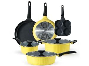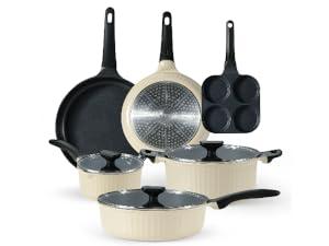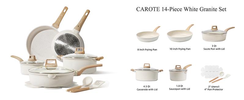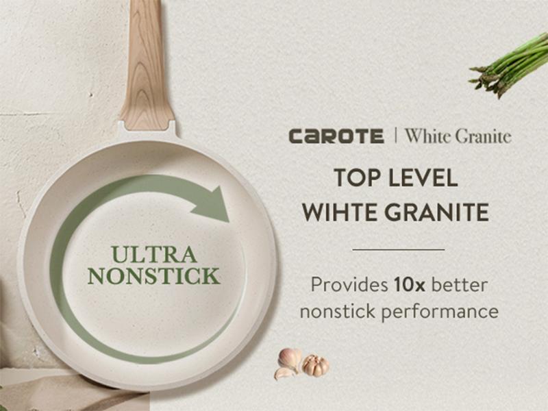 A top level, harder nonstick granite pan with 10x Ultra Non-stick performance.Even the simplest recipes get star treatment with Carote's unique and stylish kitchen pots and pans set.