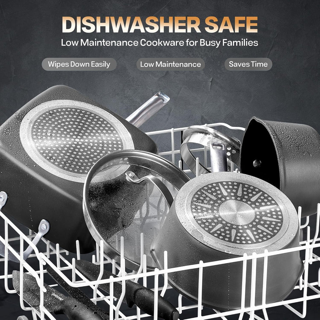 - Effortless Maintenance: Dishwasher safe for quick and easy cleaning, this cookware set is perfect for daily use and busy lifestyles.