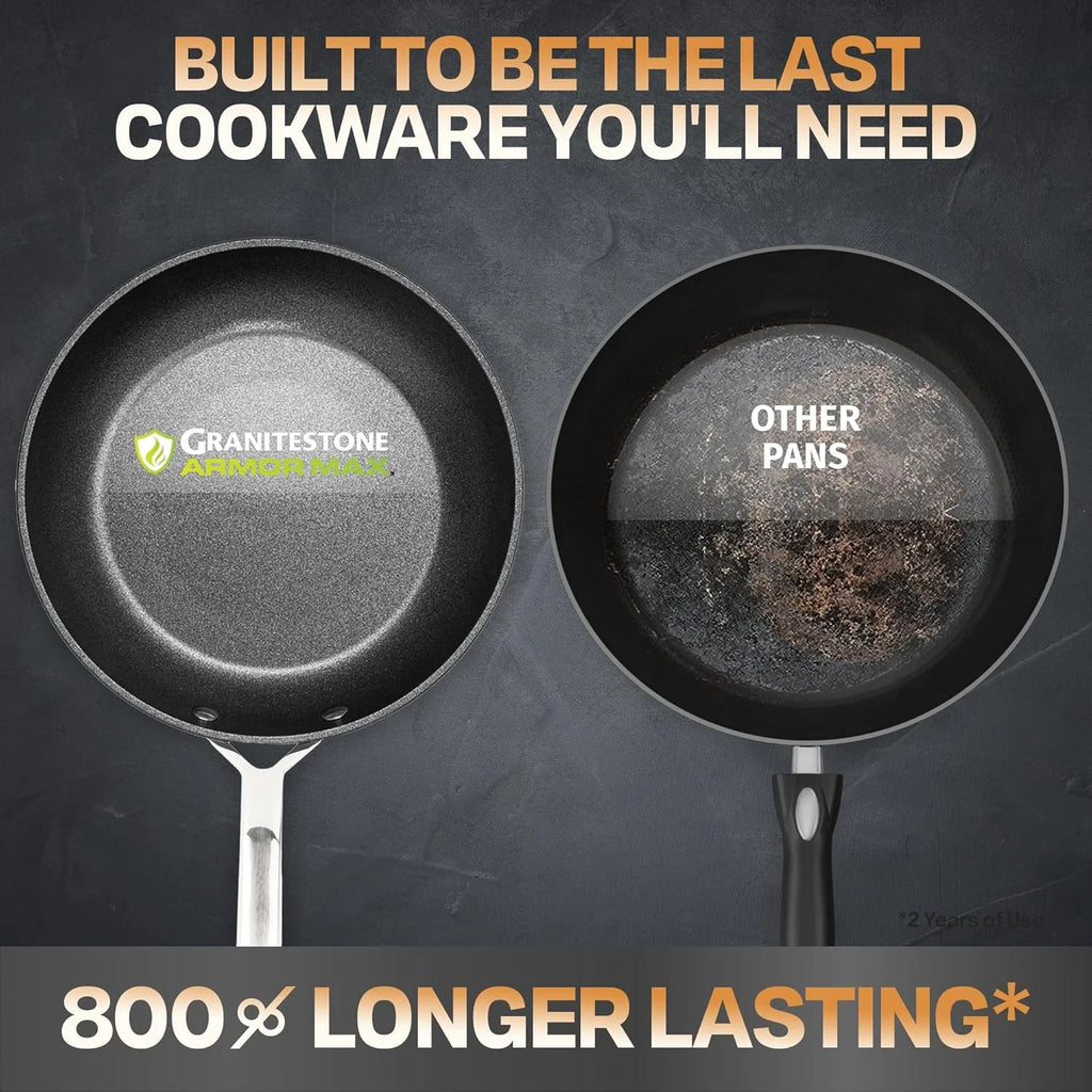 - Professional-Grade Nonstick Technology: The innovative 4-layer Armor Max nonstick coating ensures perfect food release, allowing you to cook healthier meals with minimal mess and easy cleanup.