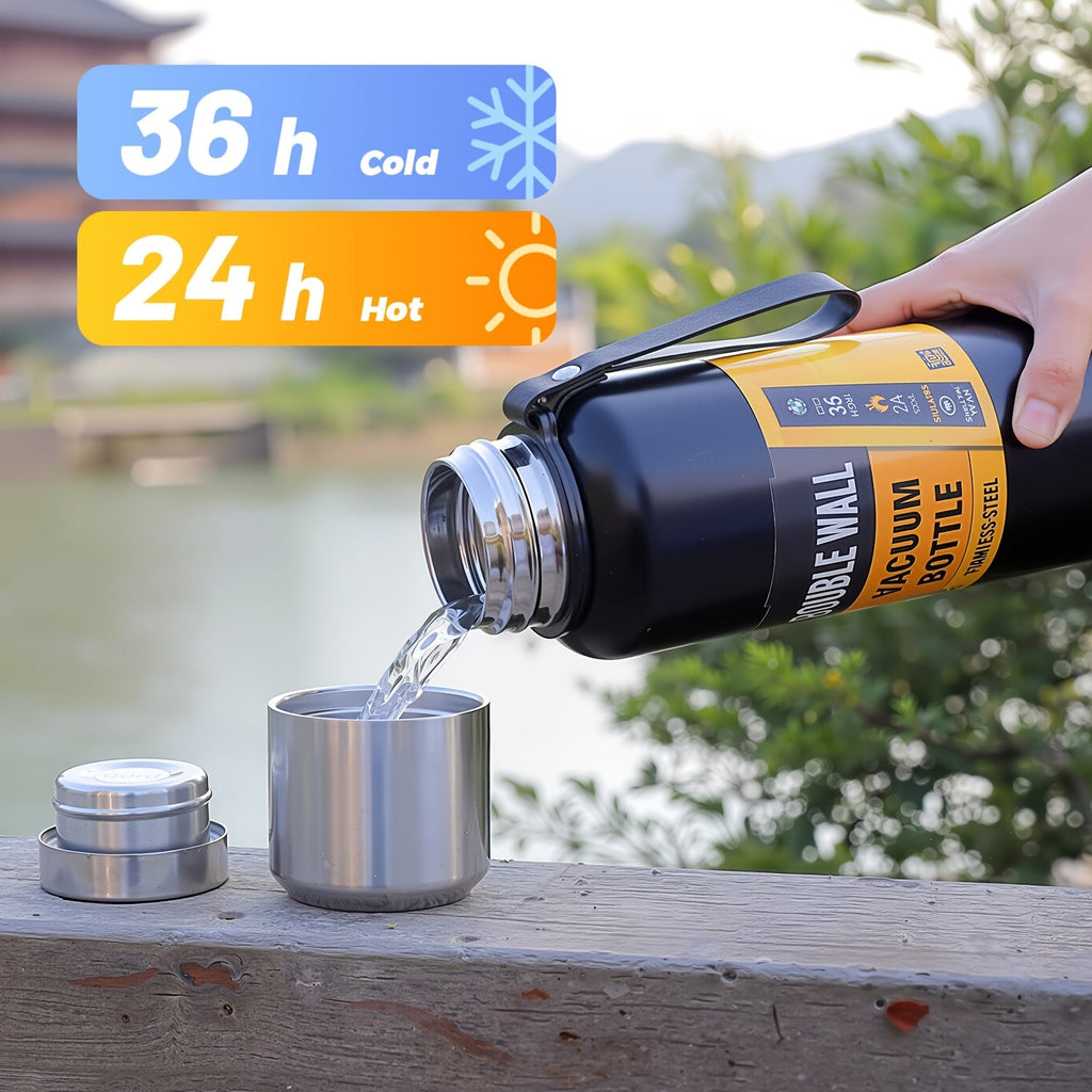 Stay hydrated all day with the 50oz Large Insulated Water Bottle With Lid. Crafted from durable stainless steel, this travel coffee mug features a leak-proof design and a convenient carrying strap, making it perfect for on-the-go use. Its double-wall vacuum insulation keeps your beverages cold for up to 24 hours or hot for 12 hours, ensuring optimal temperature no matter where your day takes you. Whether you’re hiking, commuting, or at the office, this large-capacity bottle combines practicality with style to keep you refreshed and ready.