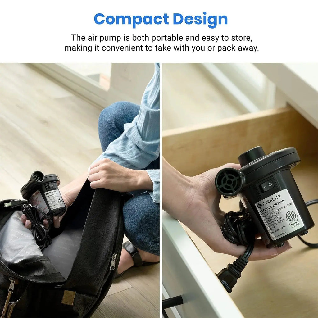 - The electric air pump is light and handy, easy to carry and carry, small, and easy to pack and transport. It is very suitable for camping, festival, or vacation.