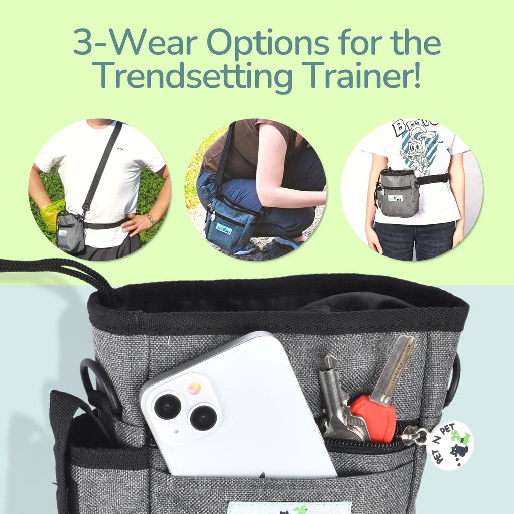 Our 3-way dog treat pouch is a total game-changer for pet training sessions. With a built-in poop bag holder and roomy pocket, it keeps treats and essentials handy for walks, training, or travel.