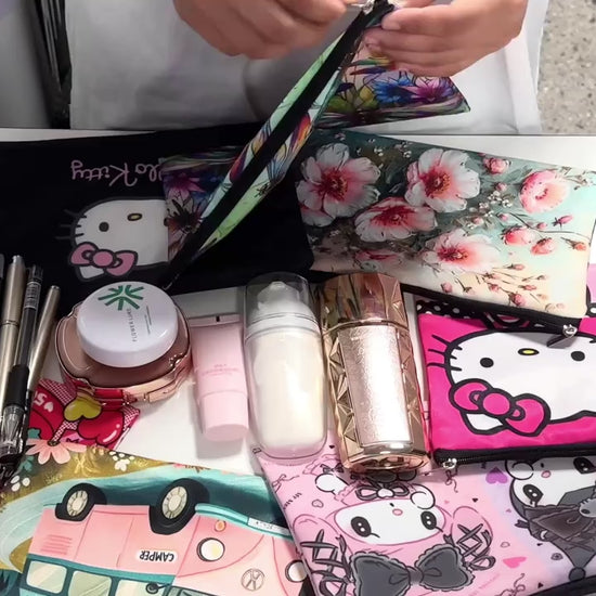 The Sanrio Hello Kitty Classic Pink Polka Dot Travel Cosmetic Bag combines charming style with practical functionality. Made from durable polyester, this machine-washable pouch keeps your makeup and essentials neatly organized during your travels. Its compact size fits perfectly in your luggage, gym bag, or backpack, making it ideal for business trips, camping, or everyday use. The secure zipper closure ensures your items stay safe, while the cheerful pink polka dot design with the iconic Hello Kitty adds a touch of fun to your routine. A perfect gift for anyone who values both convenience and cute style on the go.